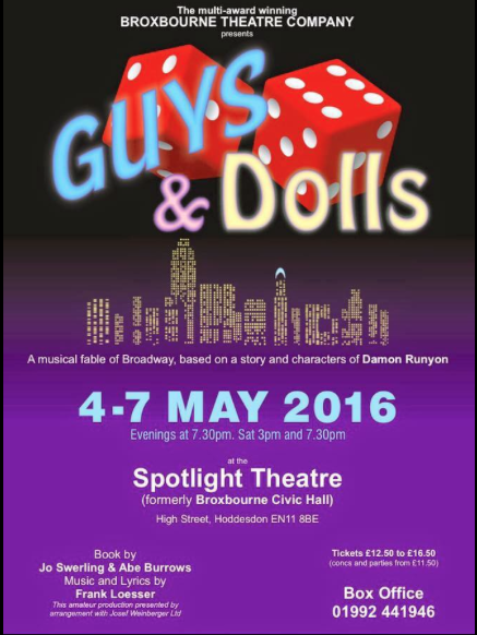 For Tickets for Guys and Dolls at The Spotlight, High Street, Hoddesdon – click here